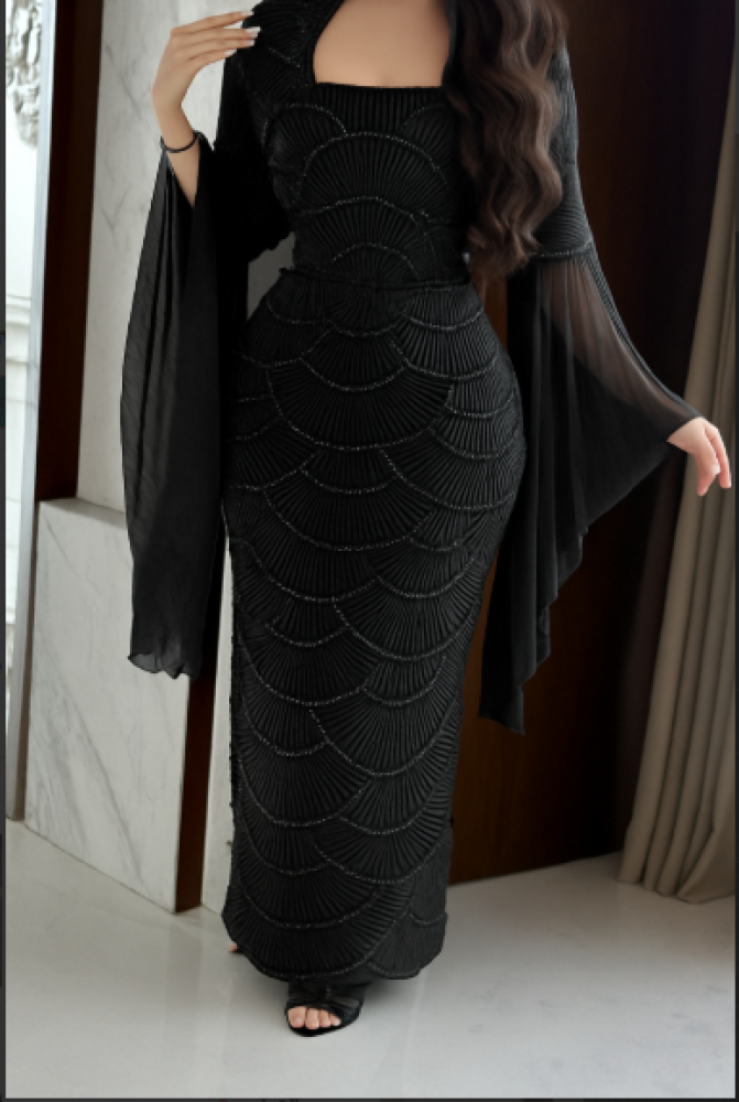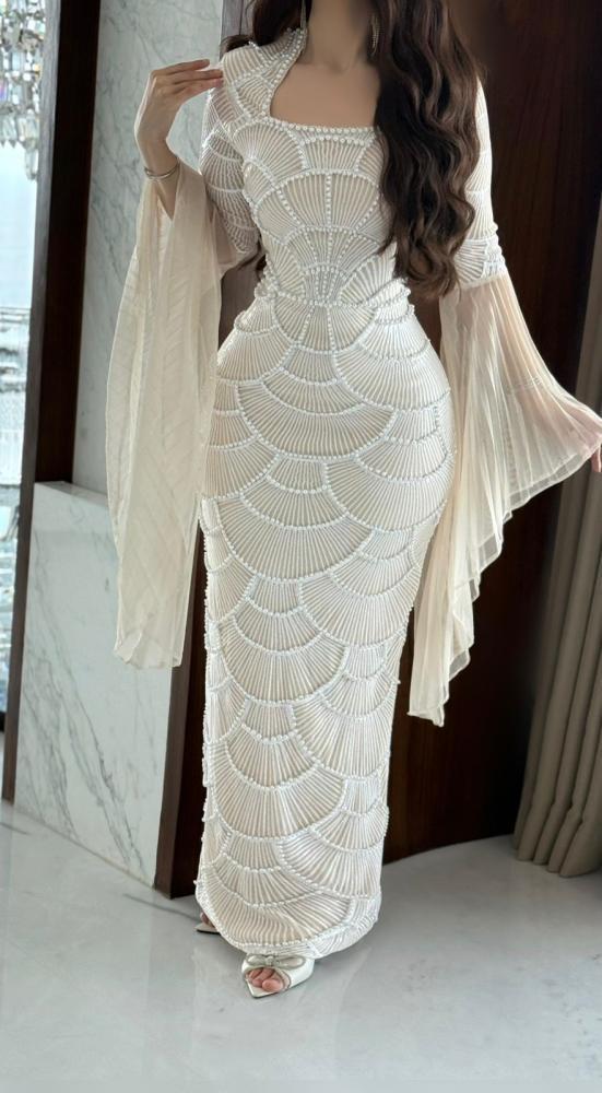 • نوع الفستان: ناعم وفاخر بطابع أنثوي ساحر.