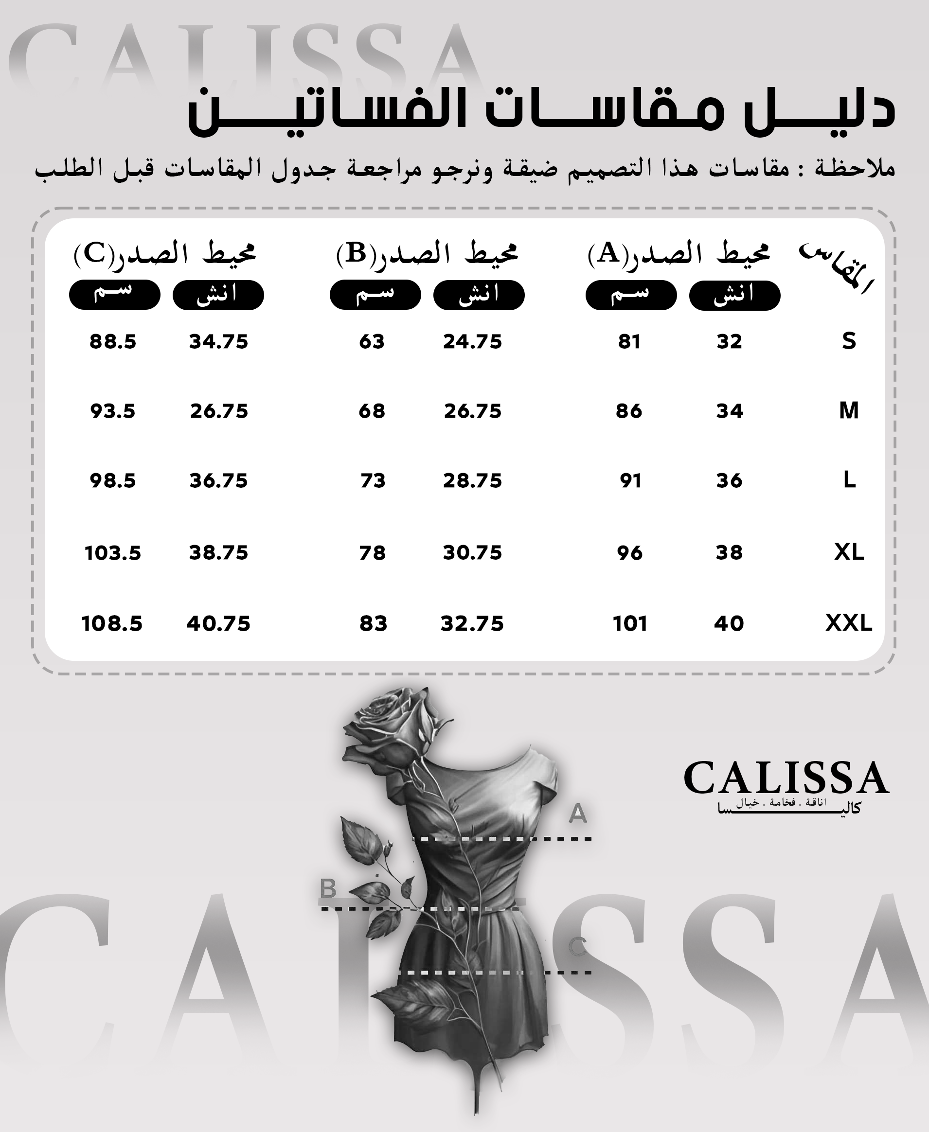 • الخصر محدد بحزام رفيع ناعم يبرز جمال الجسم بشكل متناسق.